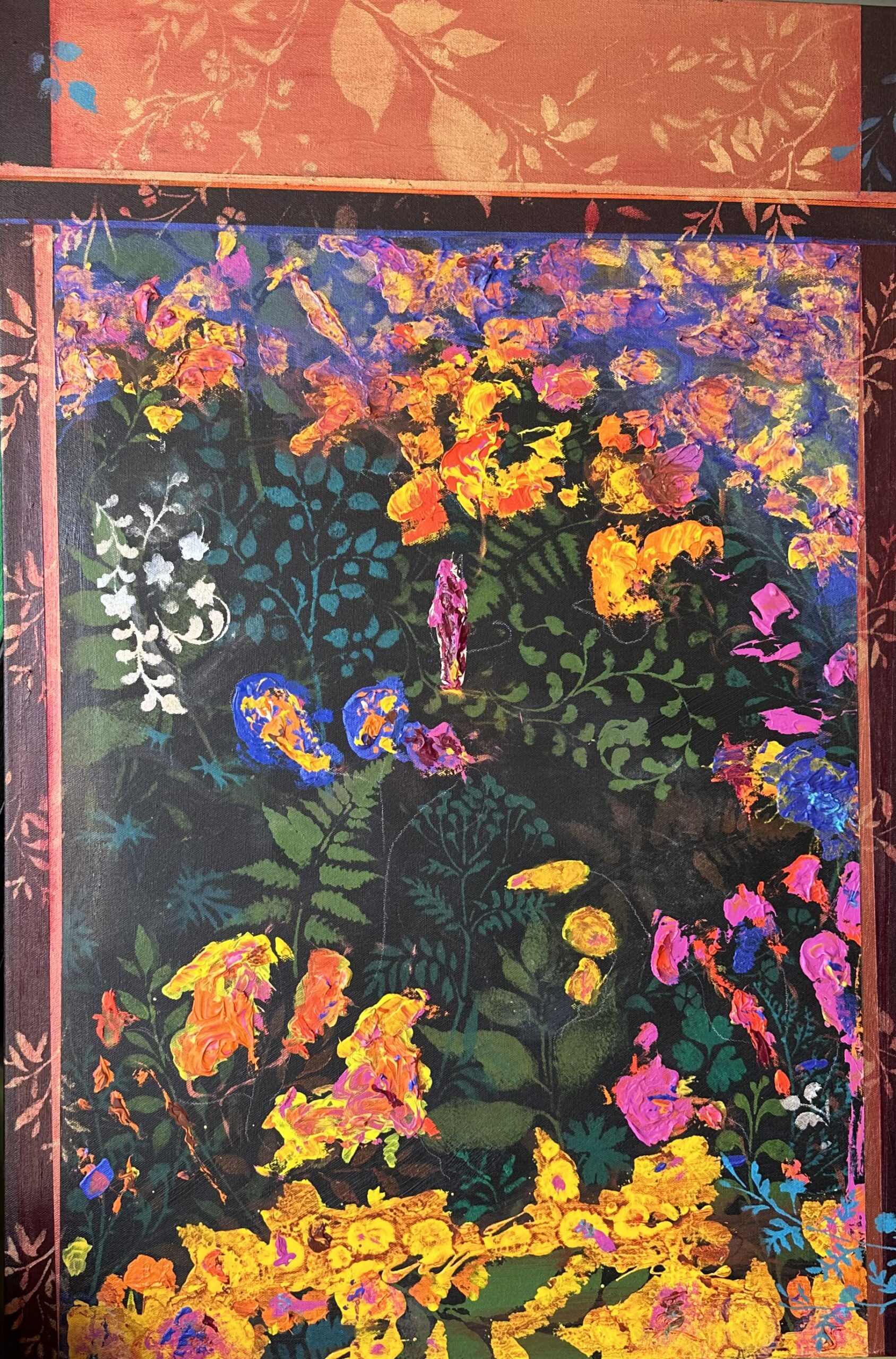 A lush, dreamlike garden emerges through layers of saturated color and light, alive with movement and quiet wonder. This piece feels both intimate and abundant—an invitation to bring warmth, beauty, and imagination into a collected space.$